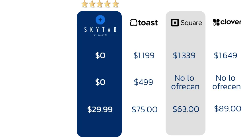SkyTab funciona para todo tipo de conceptos: full service, quick service, bares, lounges y cafeterías. El sistema se adapta al tamaño de tu operación, a tu volumen de ventas y a tu estilo de servicio.